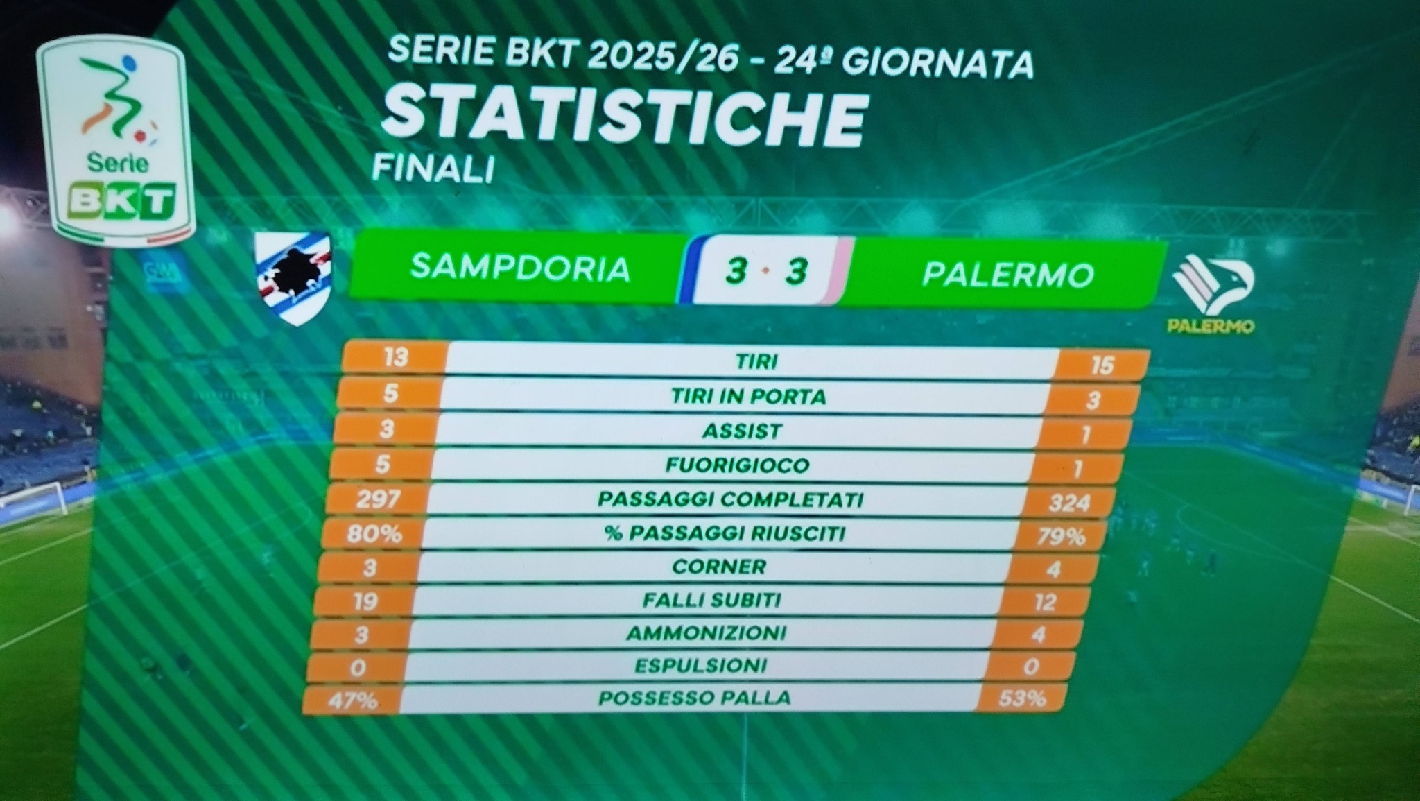 SAMPDORIA-PALERMO 3-3