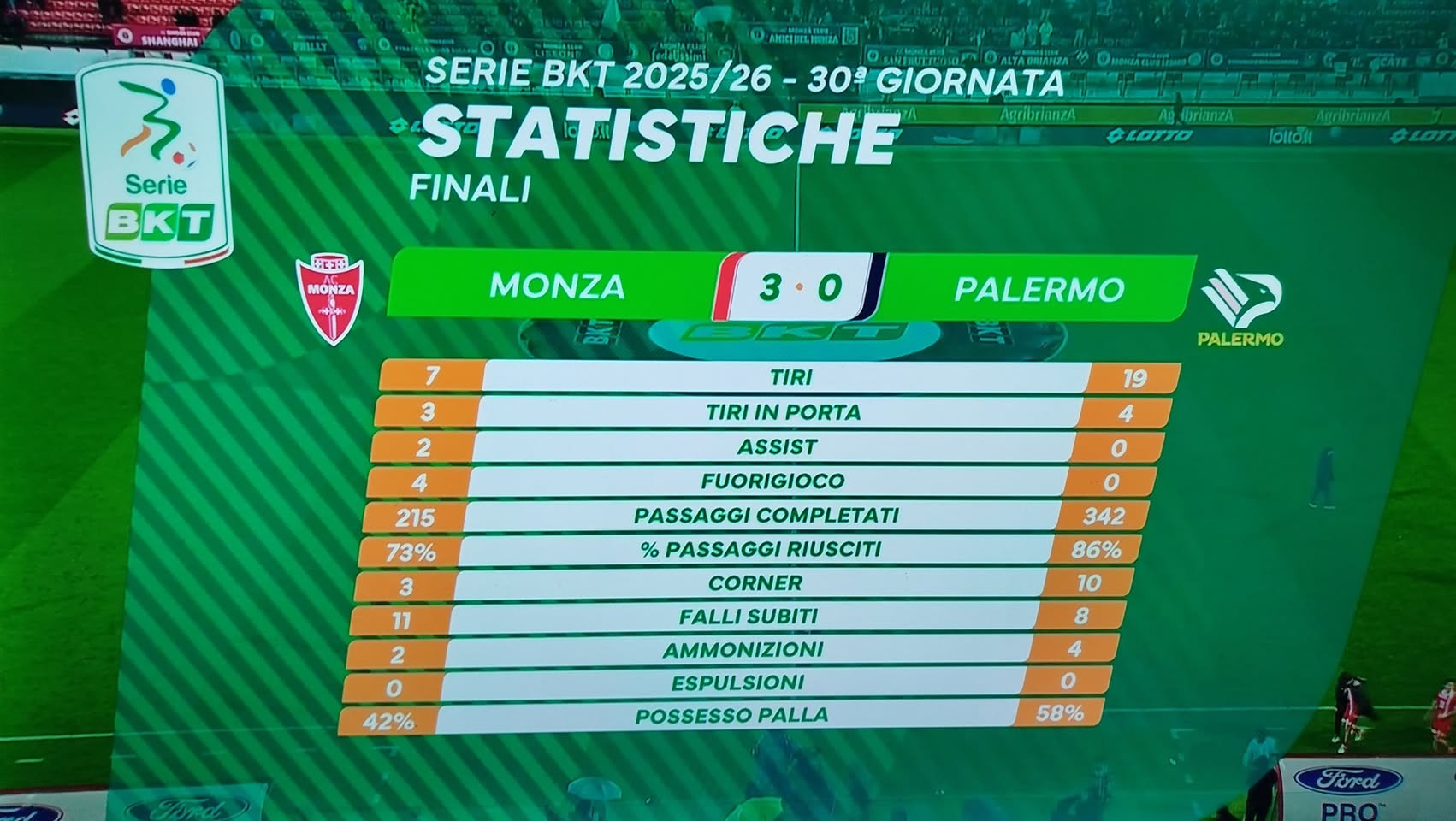 MONZA-PALERMO 3-0