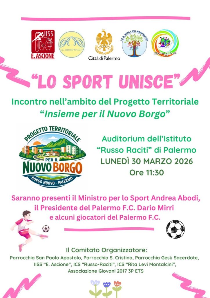 Lunedì 30 marzo alle ore 11:30 presso l’Auditorium dell’istituto Russo Raciti di Palermo (via Tindari, 52 – Palermo), diretto dalla dirigente scolastica Vincenza D’Alcamo, si è tenuto l’incontro “Lo sport unisce”.