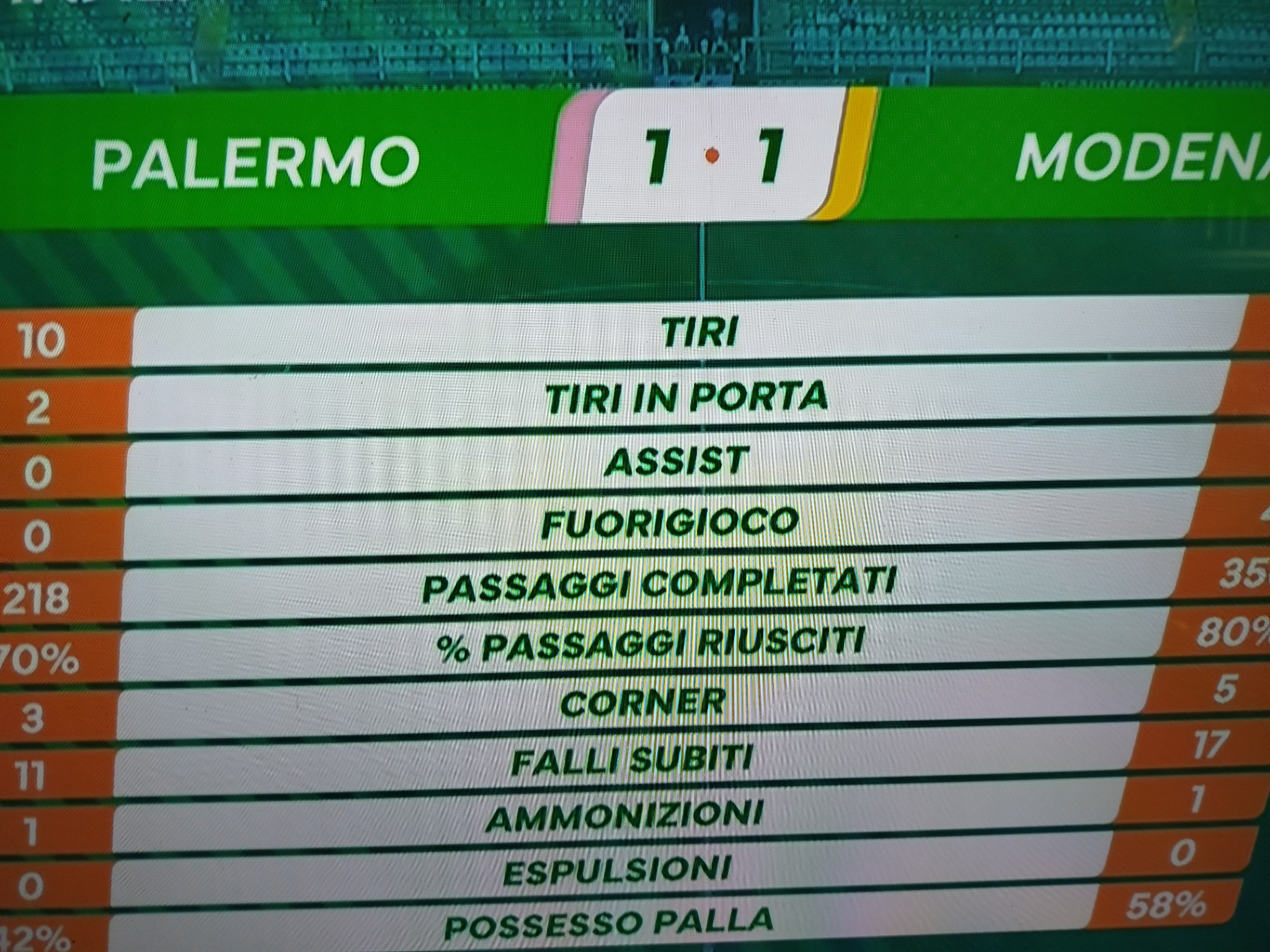 PALERMO-MODENA 1-1