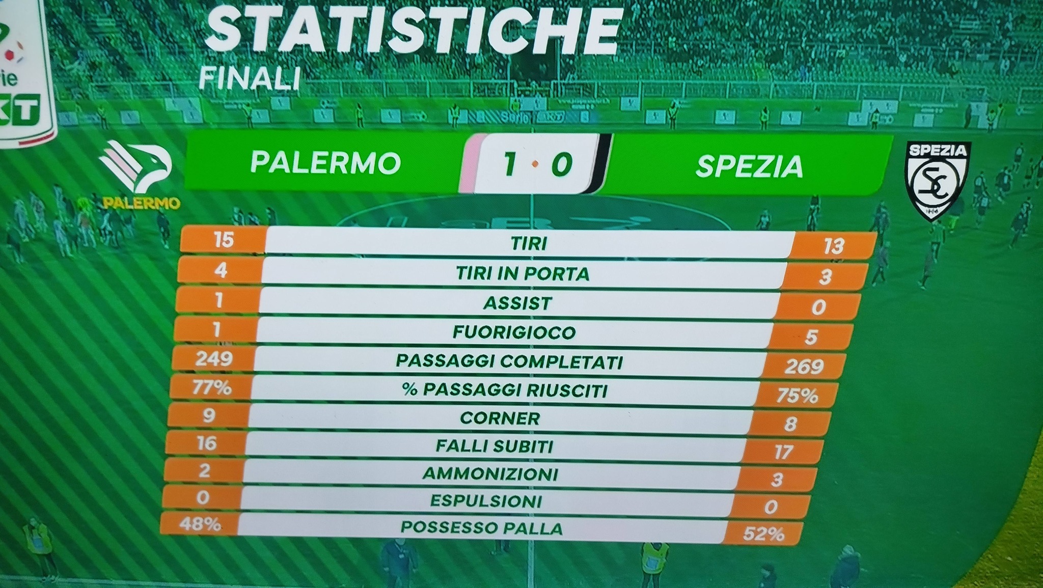Palermo-Spezia: il tabellino